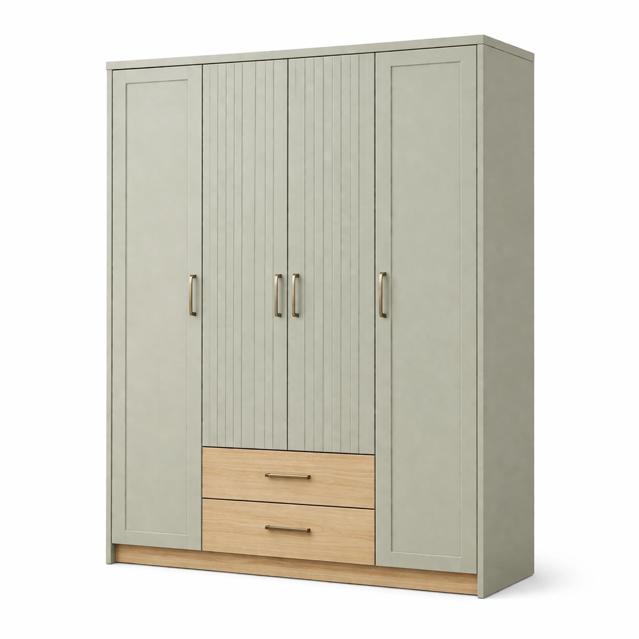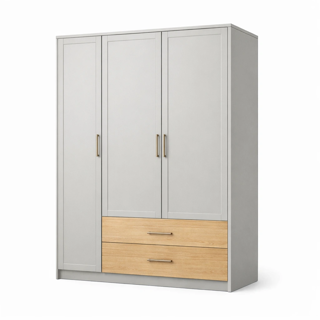 Armadio in mdf e truciolato grigio chiaro e legno naturale