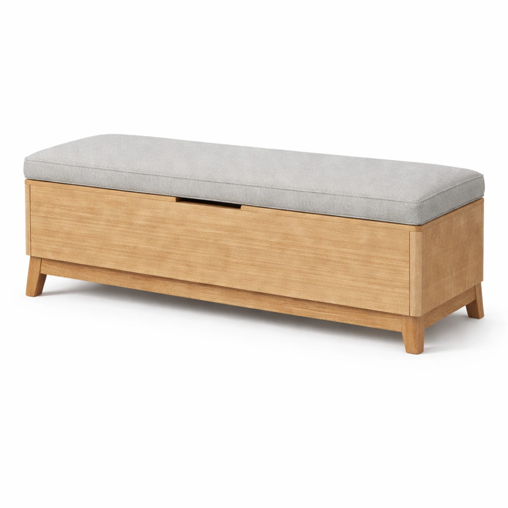 Panca contenitore in legno massello e tessuto poliestere grigio 120x40x45 cm