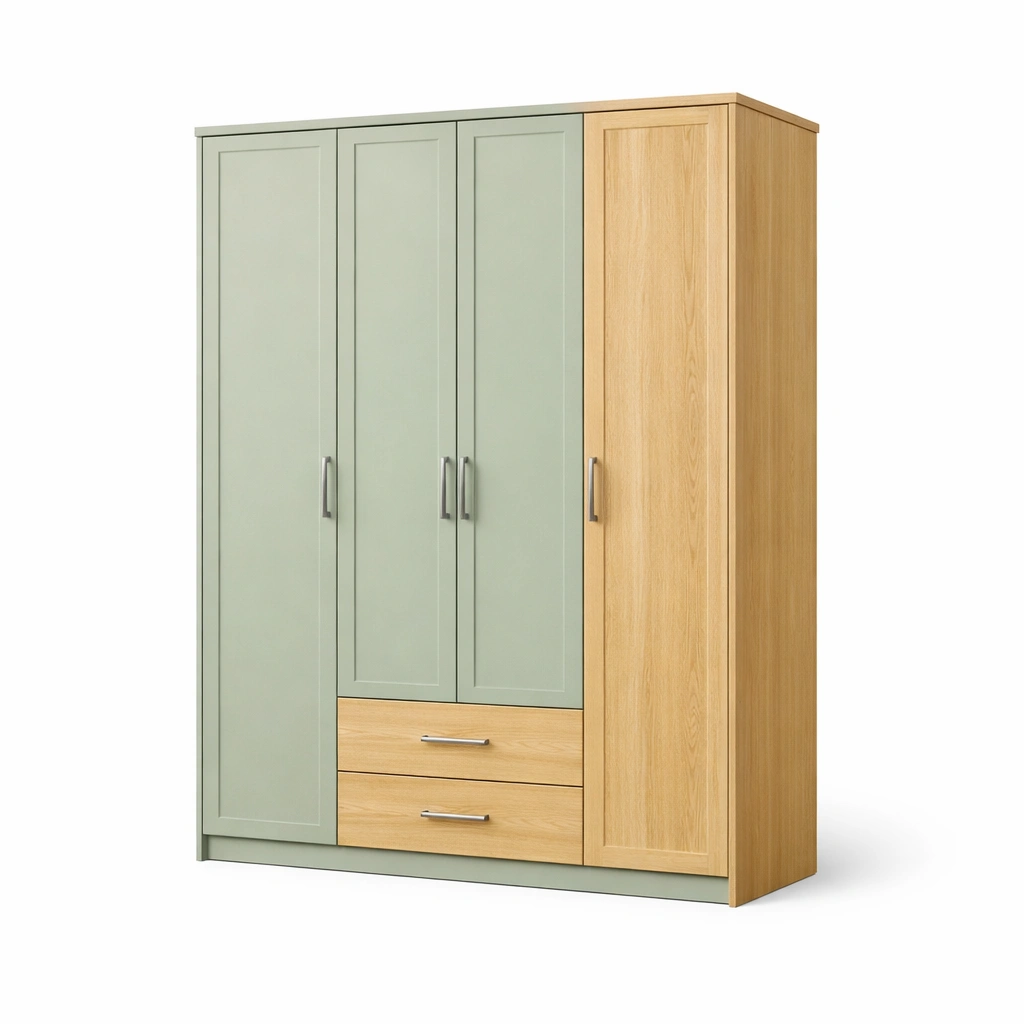Armadio in legno con ante e cassetti rovere e verde 200x160x60 cm