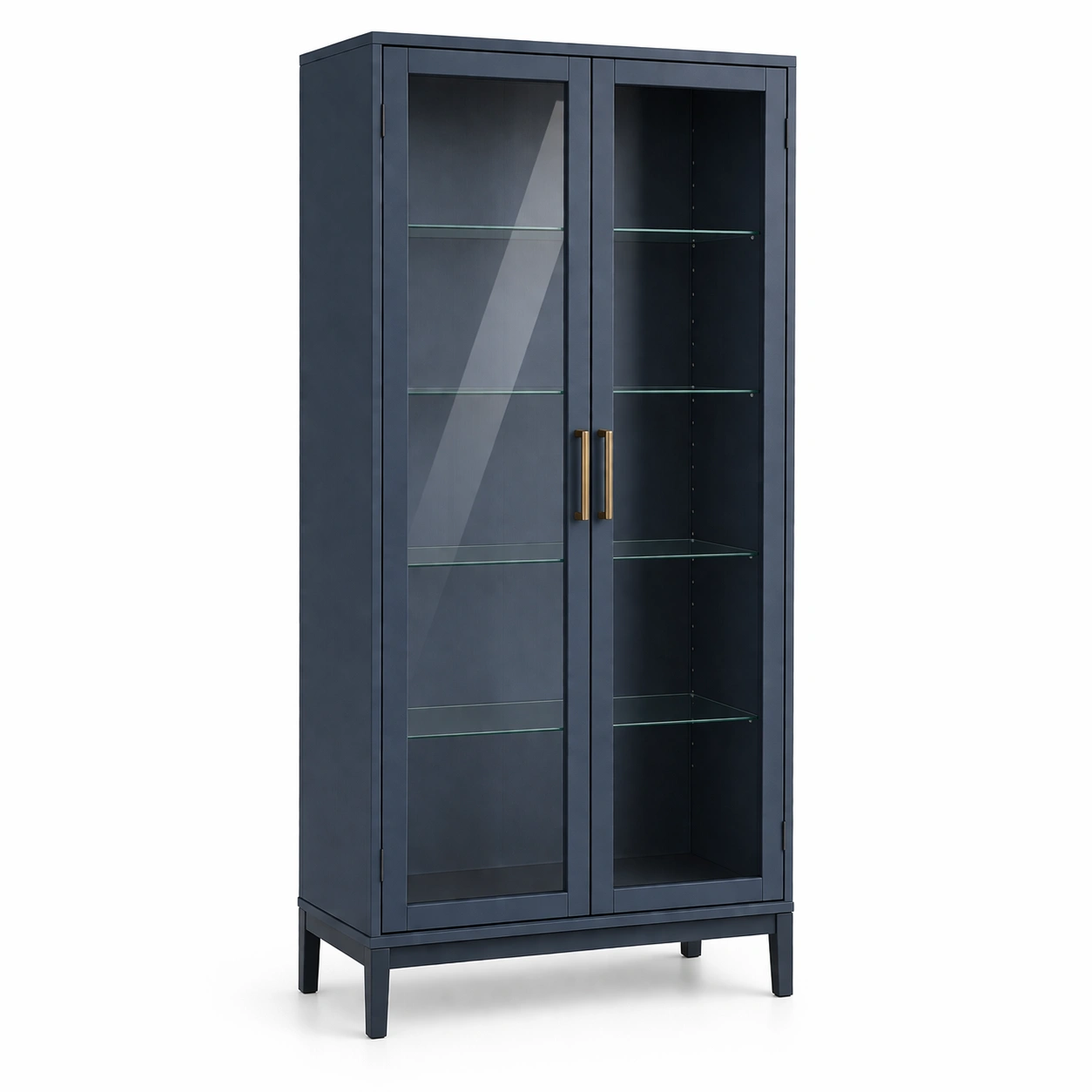 Vetrina in legno con porte in vetro temperato blu 180x80x40 cm